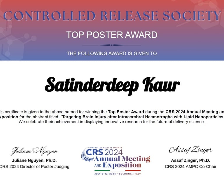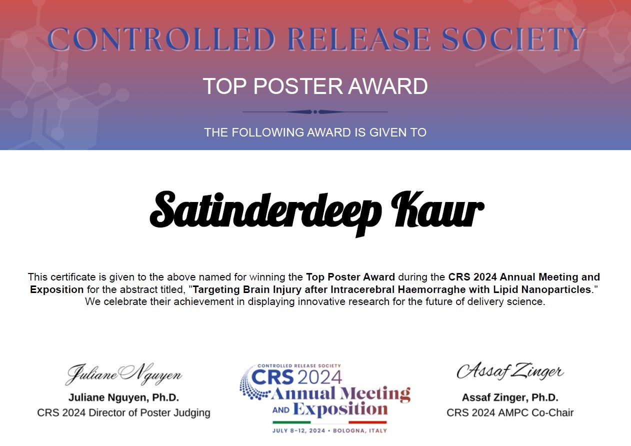 Excellent job Satinder for winning the top poster award at CRS meeting 2024
