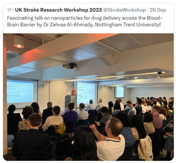Dr Zahraa Al-Ahmady was invited to give a keynote talk on ‘Using nanotechnology to deliver drugs across the BBB in stroke’ at the NIHR Stroke Workshop in London, September 2023.