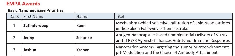 Jessica Bates and Satinderdeep Kaur received travel awards to present their work at Preclinical Stroke Symposium titled “Expanding Stroke-Related Nanoparticle Brain Infiltration to Physiological Ageing: Possibilities To Effectively Target Age-Related Neurovascular Unit Changes” and “Lipid Vesicles Offer a Selective Splenic Targeting Strategy for Peripheral Immunomodulation Following Ischemic Stroke”, respectively. The meeting took place at the University of Edinburgh from the 4th-5th of September.